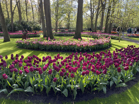 We travel to Amsterdam, driving along the bulb route, to see fields of bulbs under cultivation and visit two private gardens on the way, all with spectacular bulb plantings.