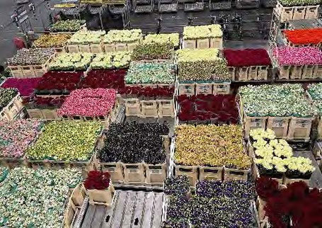 By 7:00AM the day's flowers have been sold and are being prepared for shipment by truck or airplane to the four corners of the world. Watching theses masses of fresh flowers being packed at great speed is an impressive and memorable sight - a must see for anyone interested in flowers and floristry.
